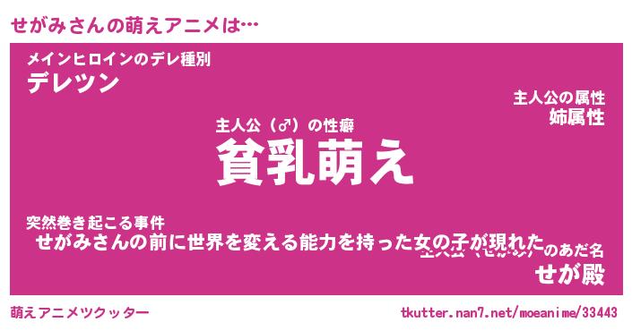 | 男性向けラノベタイトル風あだ名 | 『せがみの憂鬱』 |