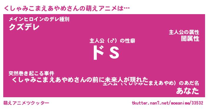 | 胡散臭い通販商品みたいなあだ名 | 『必ず成功するブレスレット…その名も「くしゃみこまえあやめ」』 |