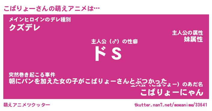 | 女子向けラノベタイトル風あだ名 | 『(仮)こばりょーのやんごとなき事情』 |