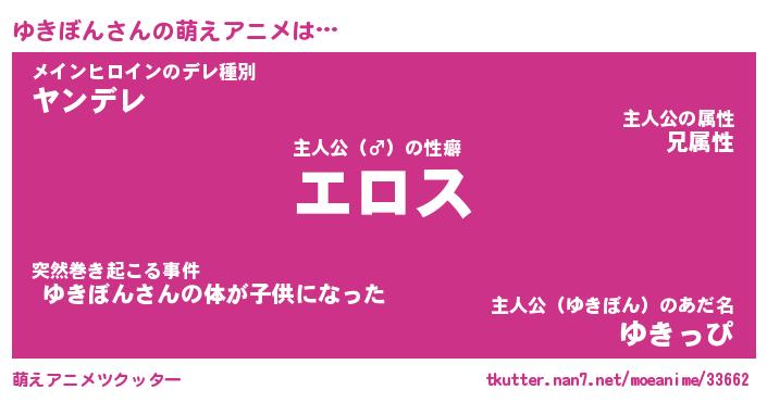 | 男性向けラノベタイトル風あだ名 | 『ユキボンアートオンライン』 |