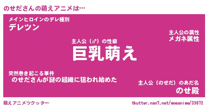 | 男性向けラノベタイトル風あだ名 | 『のせだの憂鬱』 |