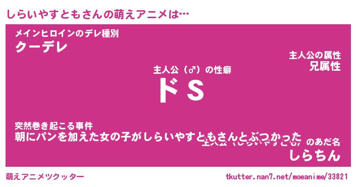 | 男性向けラノベタイトル風あだ名 | 『しらいやすともの憂鬱』 |