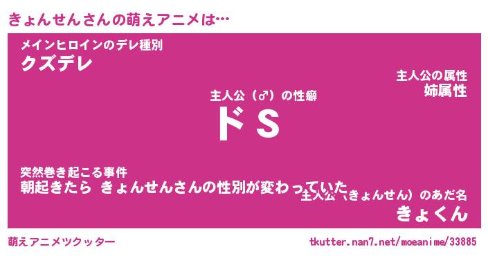 | 男性向けラノベタイトル風あだ名 | 『きょんせんの憂鬱』 |