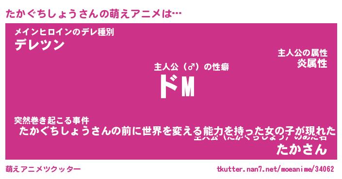 | 男性向けラノベタイトル風あだ名 | 『たかぐちしょうの憂鬱』 |