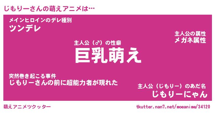 | 男性向けラノベタイトル風あだ名 | 『じもりーの憂鬱』 |