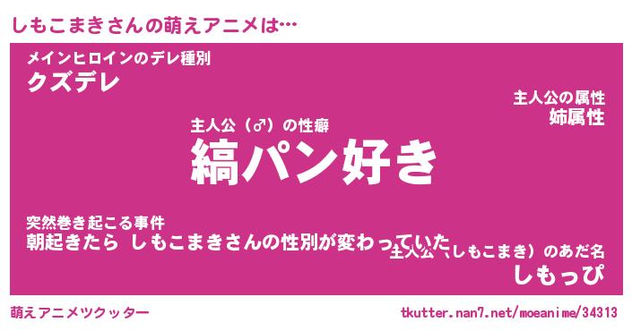 | 男性向けラノベタイトル風あだ名 | 『しもこまきの憂鬱』 |