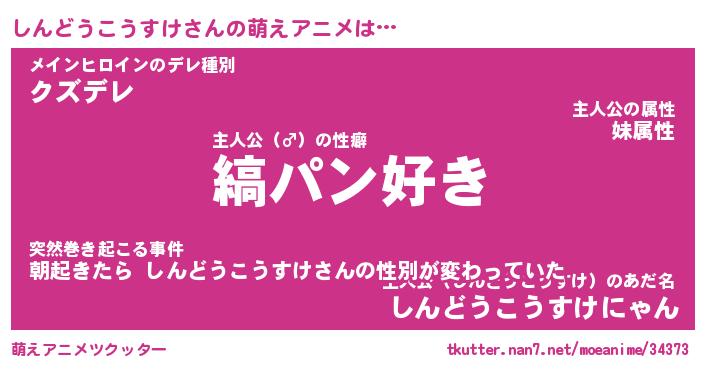 | 男性向けラノベタイトル風あだ名 | 『しんどうこうすけの憂鬱』 |