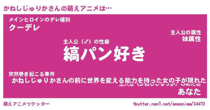 | 女子向けラノベタイトル風あだ名 | 『(仮)かねしじゅりかのやんごとなき事情』 |
