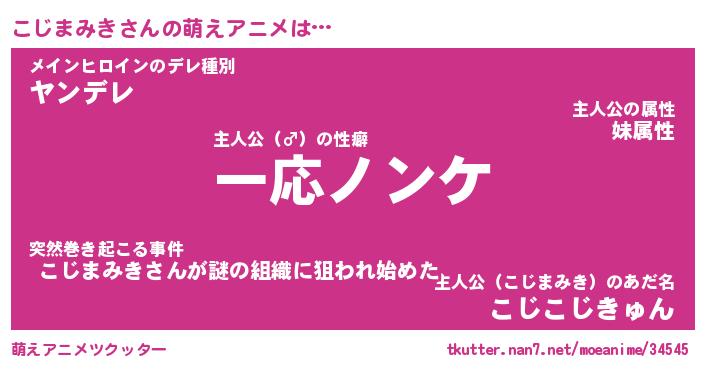 | 女子向けラノベタイトル風あだ名 | 『誰かこのこじまみきを説明してください! ~契約から始まるウェディング~』 |