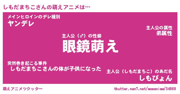 | 男性向けラノベタイトル風あだ名 | 『しもだまちこの憂鬱』 |