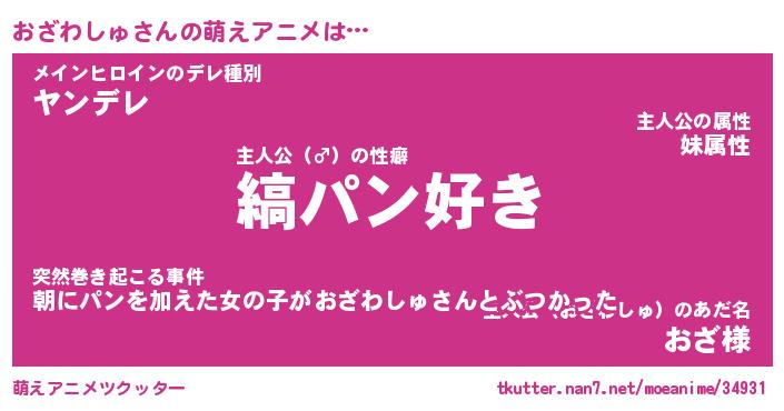 | 女子向けラノベタイトル風あだ名 | 『(仮)おざわしゅのやんごとなき事情』 |