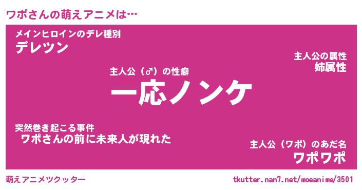 | 女子向けラノベタイトル風あだ名 | 『誰かこのワポを説明してください! ~契約から始まるウェディング~』 |