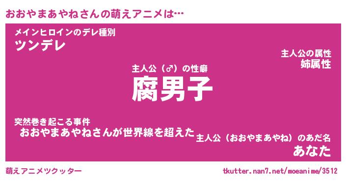 | 男性向けラノベタイトル風あだ名 | 『オオヤマアヤネアートオンライン』 |