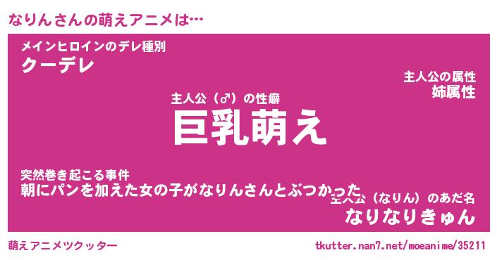 | 男性向けラノベタイトル風あだ名 | 『なりんの憂鬱』 |