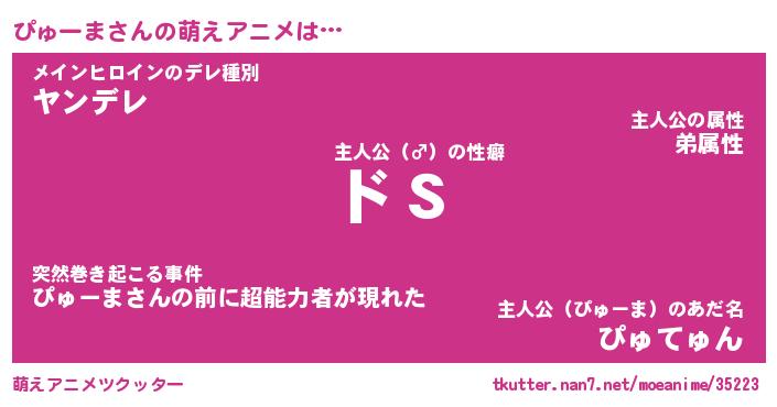 | 男性向けラノベタイトル風あだ名 | 『ぴゅーまの憂鬱』 |