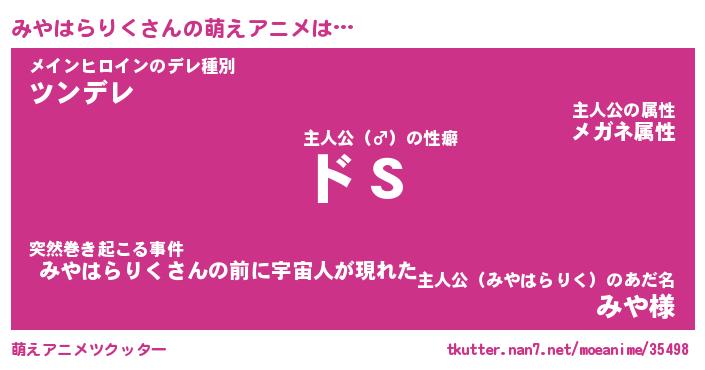 | 男性向けラノベタイトル風あだ名 | 『みやはらりくの憂鬱』 |