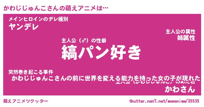 | 男性向けラノベタイトル風あだ名 | 『かわじじゅんこの憂鬱』 |