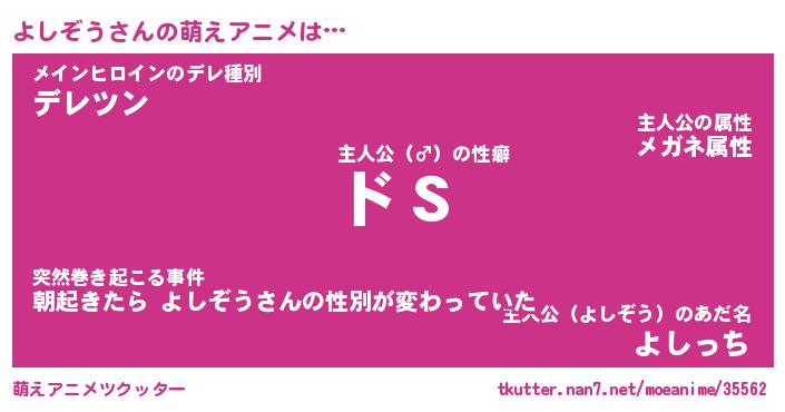 | 男性向けラノベタイトル風あだ名 | 『よしぞうの憂鬱』 |