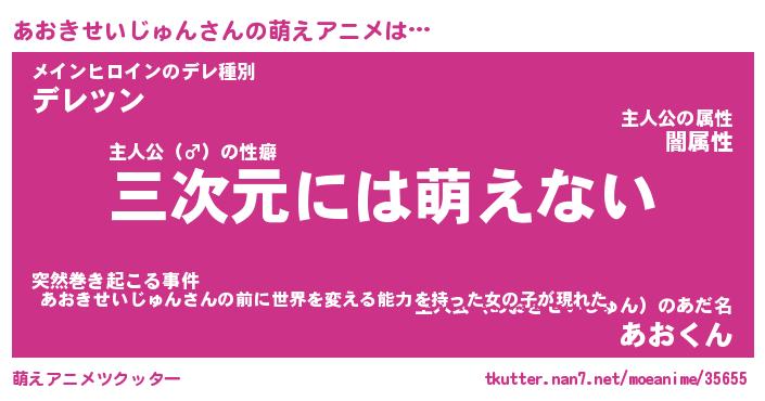 | 男性向けラノベタイトル風あだ名 | 『アオキセイジュンアートオンライン』 |