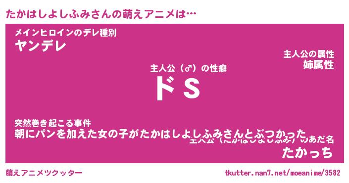 | 女子向けラノベタイトル風あだ名 | 『(仮)たかはしよしふみのやんごとなき事情』 |