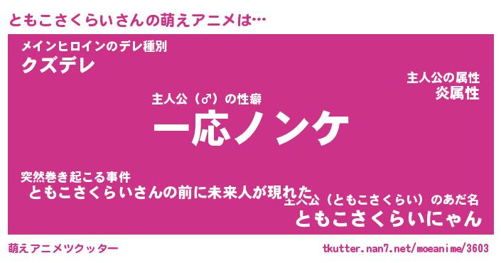 | 女子向けラノベタイトル風あだ名 | 『誰かこのともこさくらいを説明してください! ~契約から始まるウェディング~』 |