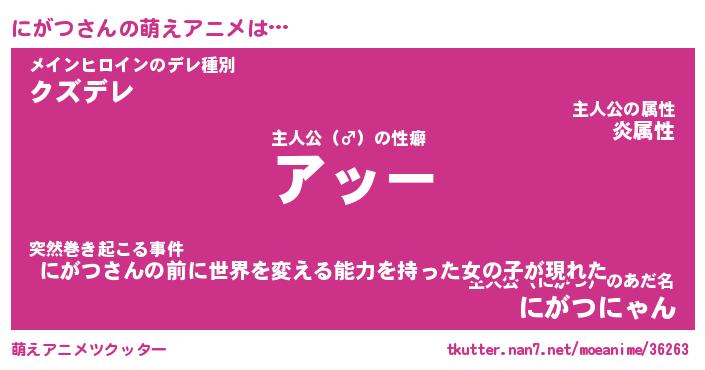 | ファンタジー風あだ名 | 『ニガフェル』『エターナルニガツー』 |
