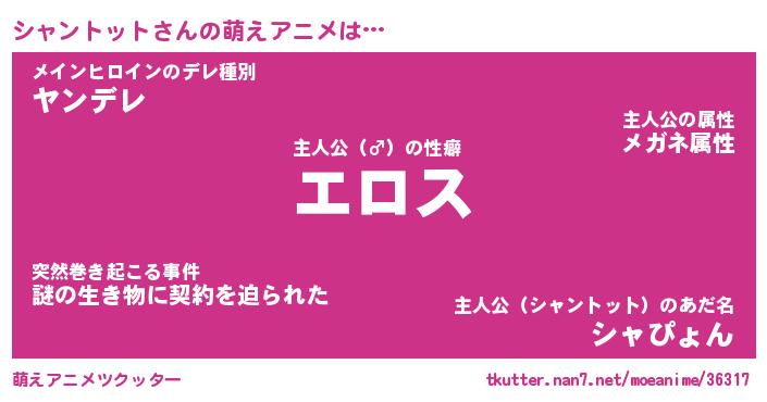 | 女子向けラノベタイトル風あだ名 | 『誰かこのシャントットを説明してください! ~契約から始まるウェディング~』 |