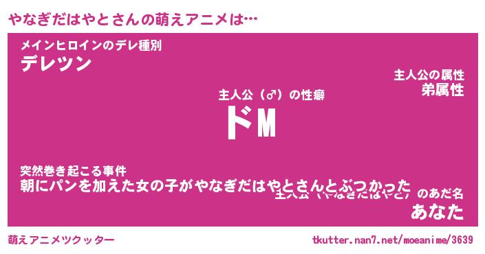 | 女子向けラノベタイトル風あだ名 | 『(仮)やなぎだはやとのやんごとなき事情』 |