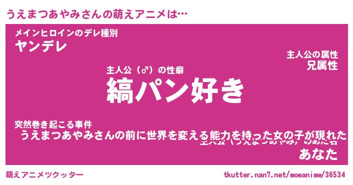 | 女子向けラノベタイトル風あだ名 | 『(仮)うえまつあやみのやんごとなき事情』 |