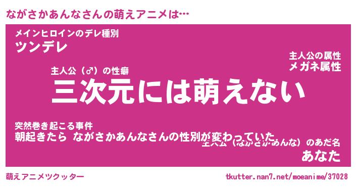 | 男性向けラノベタイトル風あだ名 | 『ナガサカアンナアートオンライン』 |