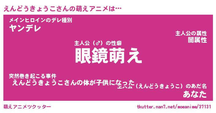 | 男性向けラノベタイトル風あだ名 | 『えんどうきょうこの憂鬱』 |