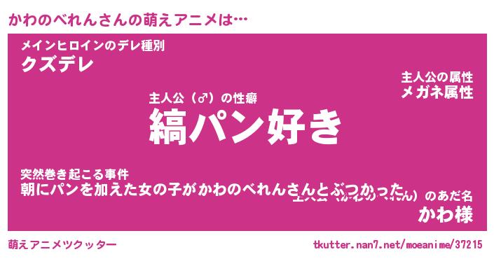 | 男性向けラノベタイトル風あだ名 | 『かわのべれんの憂鬱』 |