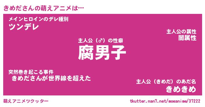 | 男性向けラノベタイトル風あだ名 | 『キメダアートオンライン』 |