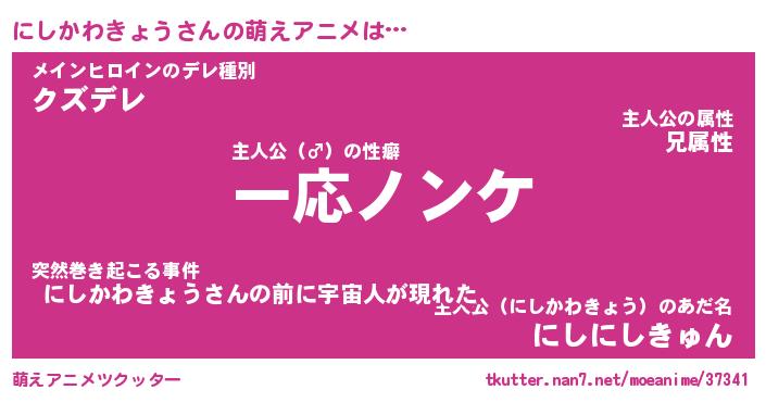 | 女子向けラノベタイトル風あだ名 | 『誰かこのにしかわきょうを説明してください! ~契約から始まるウェディング~』 |