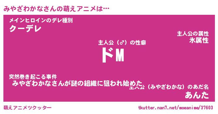 | 男性向けラノベタイトル風あだ名 | 『みやざわかなの憂鬱』 |