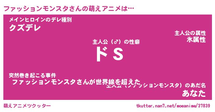 | 男性向けラノベタイトル風あだ名 | 『ファッションモンスタの憂鬱』 |