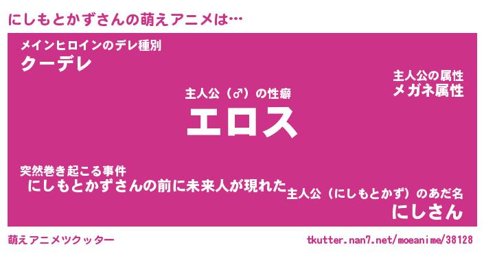 | 男性向けラノベタイトル風あだ名 | 『ニシモトカズアートオンライン』 |