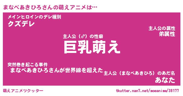 | 男性向けラノベタイトル風あだ名 | 『まなべあきひろの憂鬱』 |