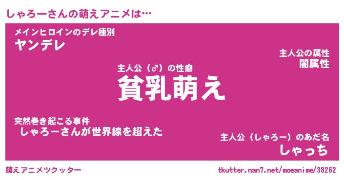 | 男性向けラノベタイトル風あだ名 | 『しゃろーの憂鬱』 |