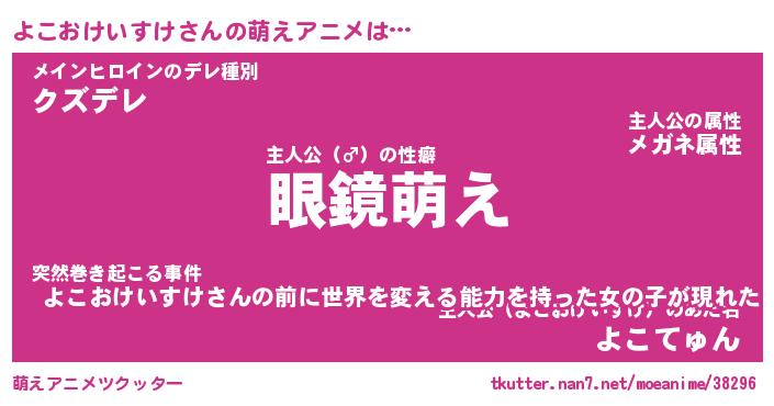 | 男性向けラノベタイトル風あだ名 | 『よこおけいすけの憂鬱』 |