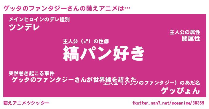 | 男性向けラノベタイトル風あだ名 | 『ゲッタのファンタジーの憂鬱』 |