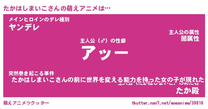 | 男性向けラノベタイトル風あだ名 | 『タカハシマイコアートオンライン』 |