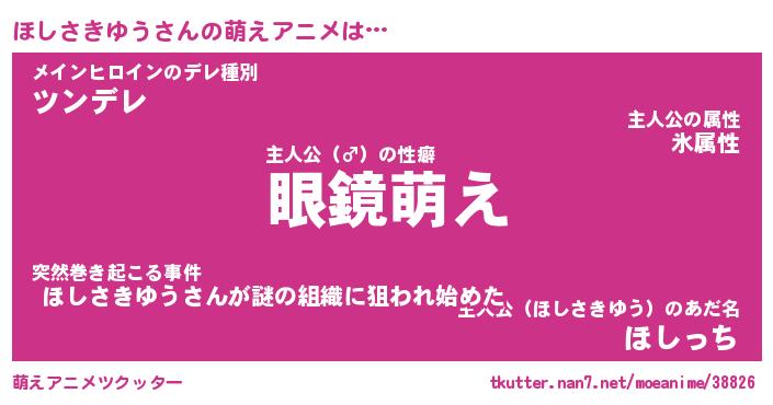 | 男性向けラノベタイトル風あだ名 | 『ほしさきゆうの憂鬱』 |