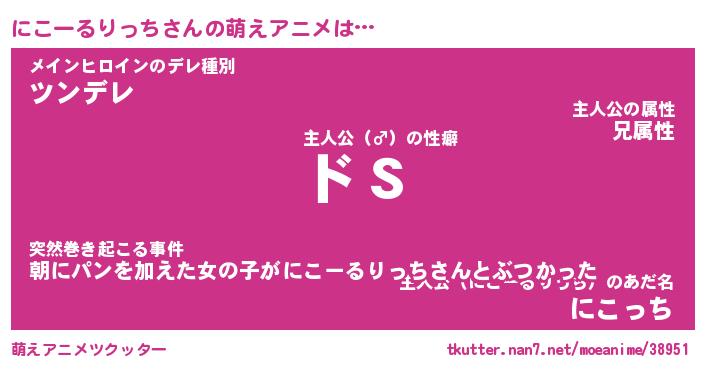 | 男性向けラノベタイトル風あだ名 | 『にこーるりっちの憂鬱』 |