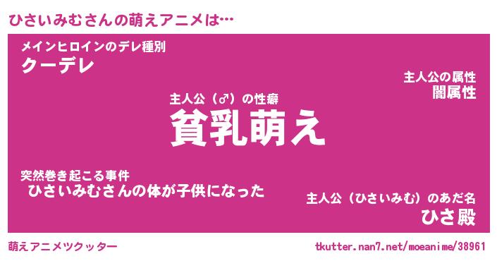 | 女子向けラノベタイトル風あだ名 | 『(仮)ひさいみむのやんごとなき事情』 |