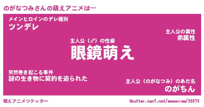 | 男性向けラノベタイトル風あだ名 | 『のがなつみの憂鬱』 |