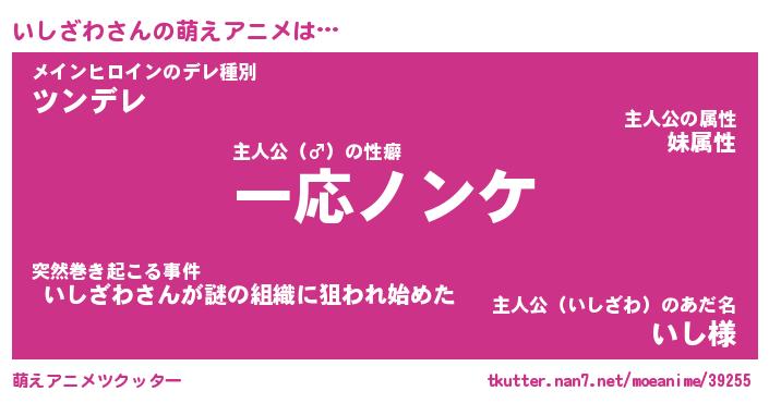 | 男性向けラノベタイトル風あだ名 | 『イシザワアートオンライン』 |