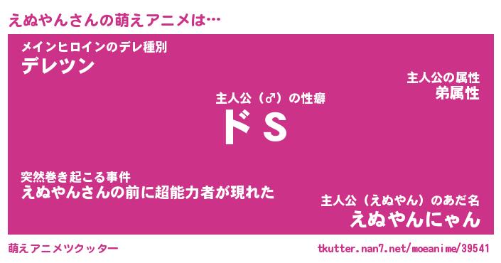 | 男性向けラノベタイトル風あだ名 | 『えぬやんの憂鬱』 |