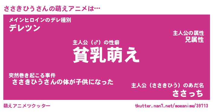 | 男性向けラノベタイトル風あだ名 | 『ささきひうの憂鬱』 |