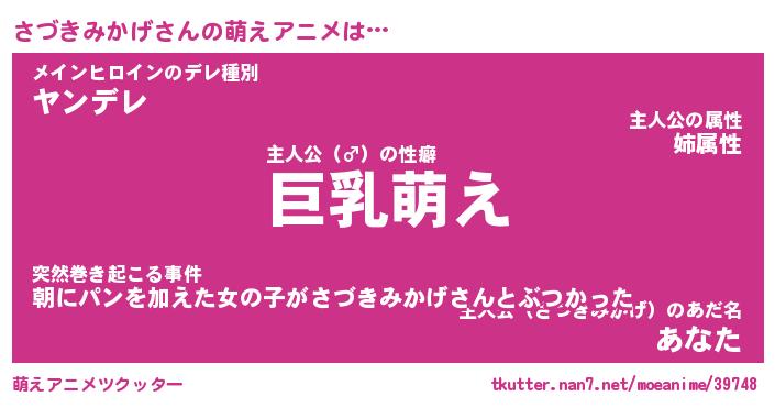 | 胡散臭い通販商品みたいなあだ名 | 『モテモテ間違いなし霊験あらたかなお札…その名も「さづきみかげ」』 |